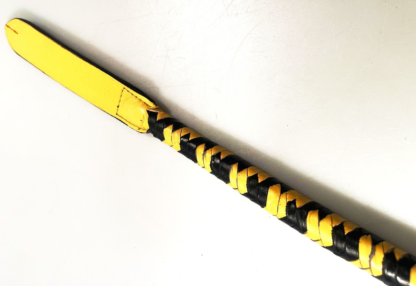 Diese hochwertige Kantschu vereint klassische Form mit kraftvoller Dynamik – ideal für alle, die beim Spanking Wert auf klare Impulse und kontrollierte Führung legen. Durch ihre charakteristische kantige Form erzeugt sie ein intensives, präzises Schlaggefühl mit markantem Sound.