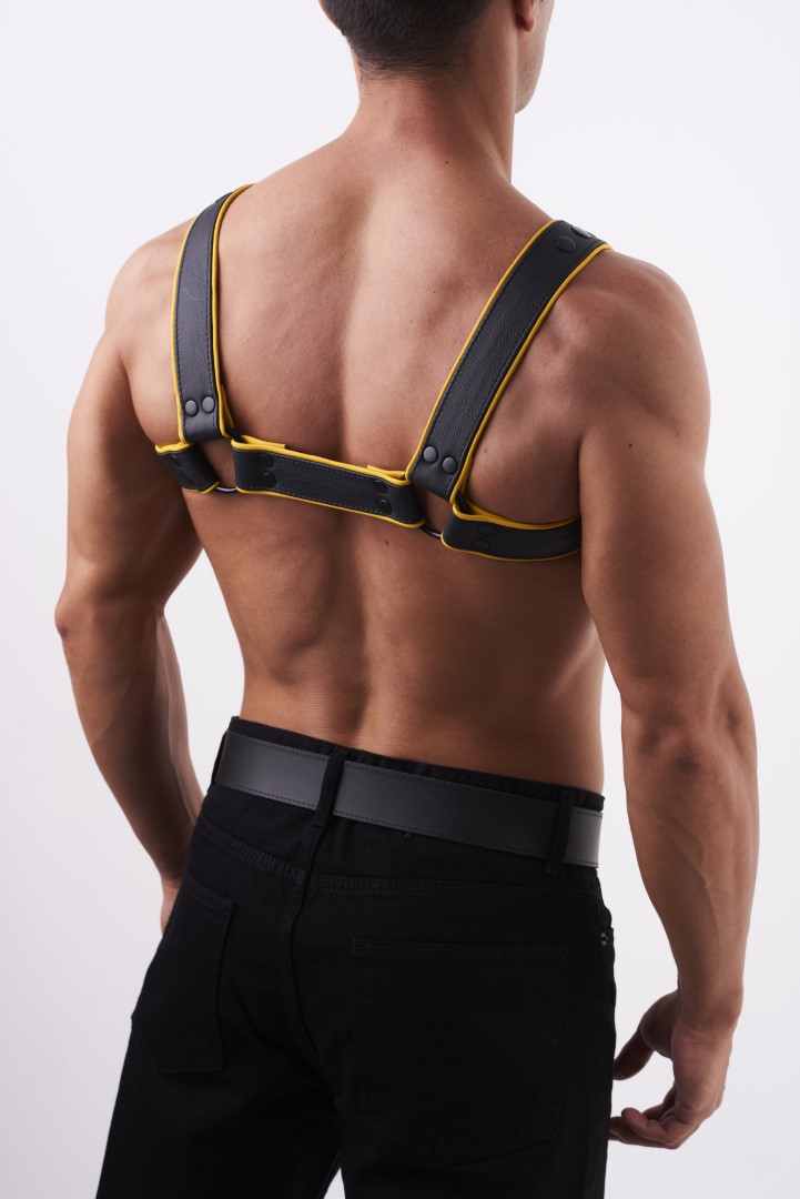 HighQuality - Soft Leder Brust Harness Schwarz/Gelb