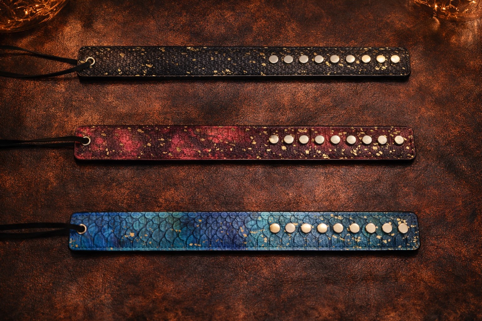Der Cosmic Edge Slapper ist mehr als nur ein Tool – er ist ein Statement. Inspiriert von der Tiefe des BDSM-Spiels vereint dieses Design kraftvolle Präsenz mit einer faszinierenden, gesprenkelten Optik, die an Sternenstaub erinnert.
