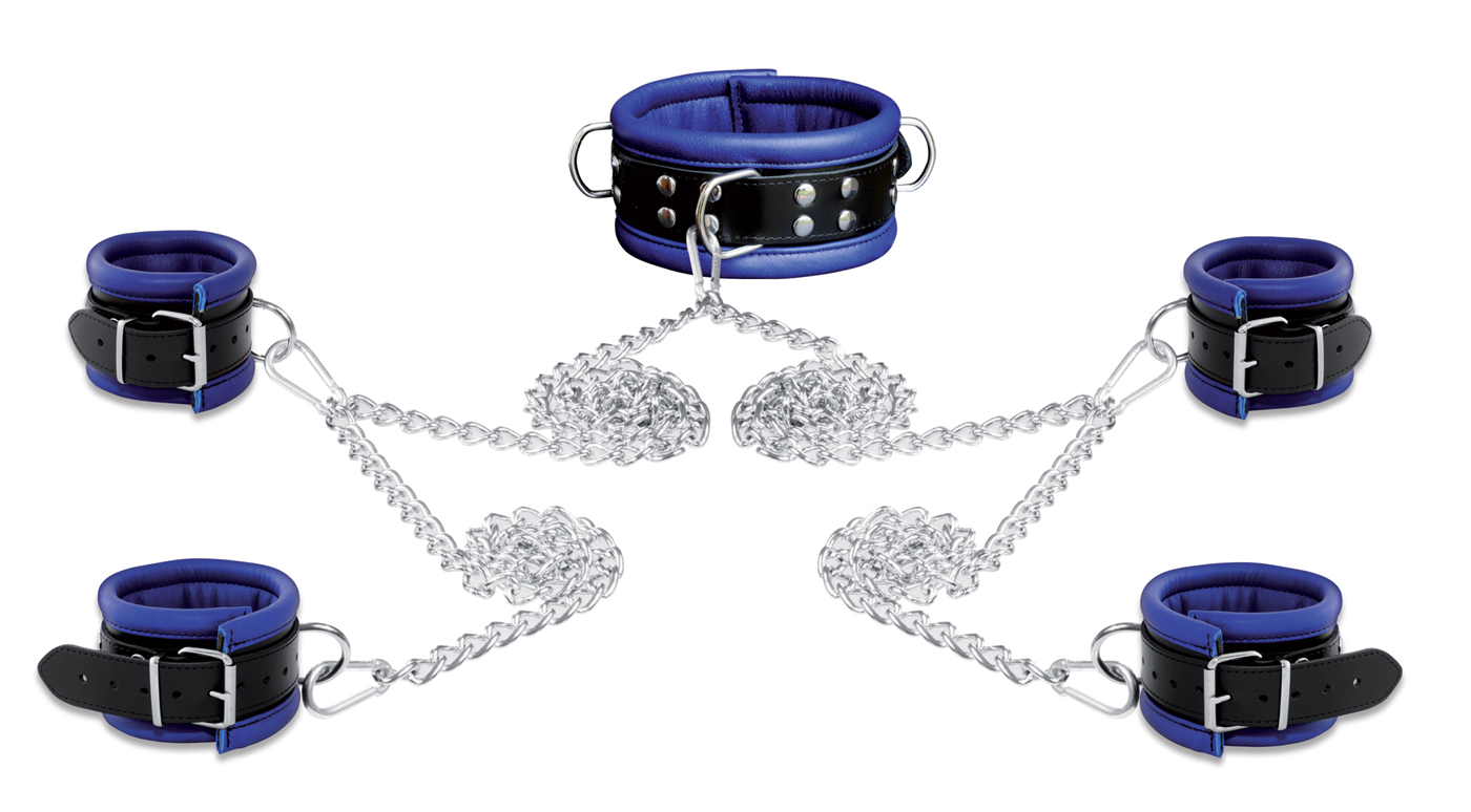 Leder Fesselset Blau abschließbar