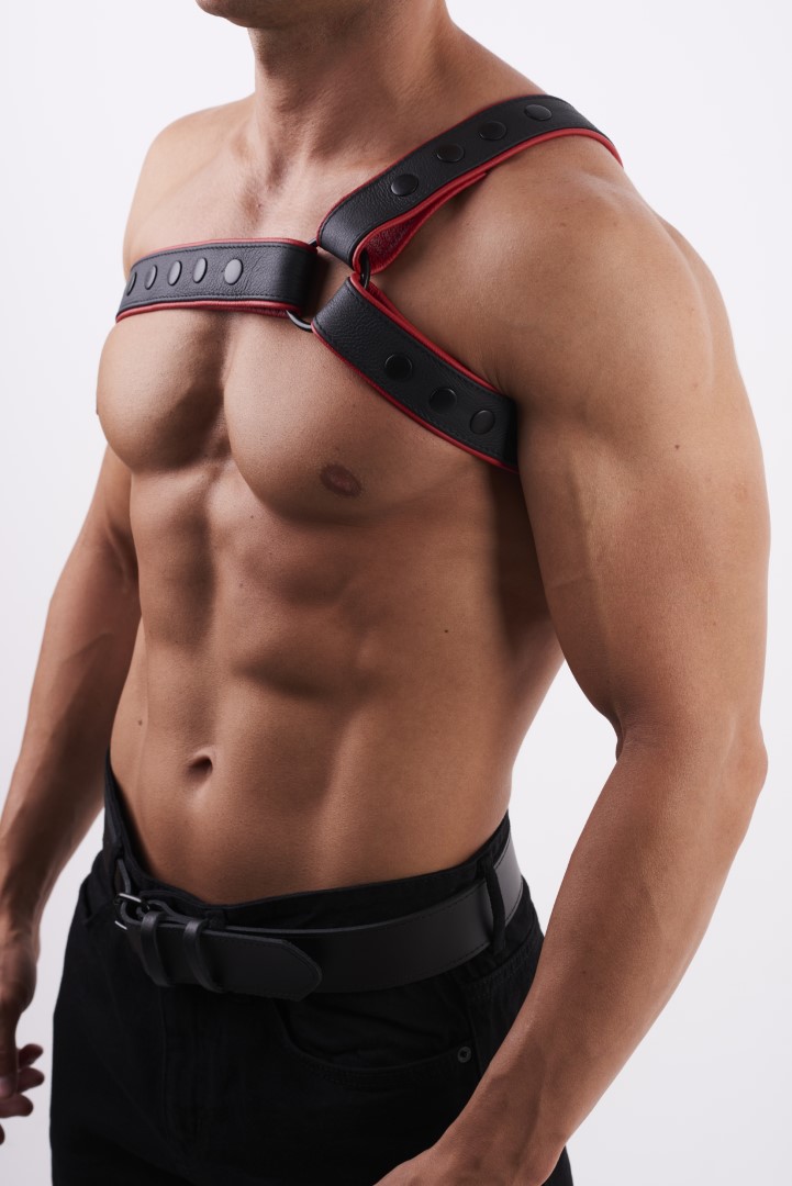 HighQuality - Soft Leder Brust Harness Y Schwarz/Rot