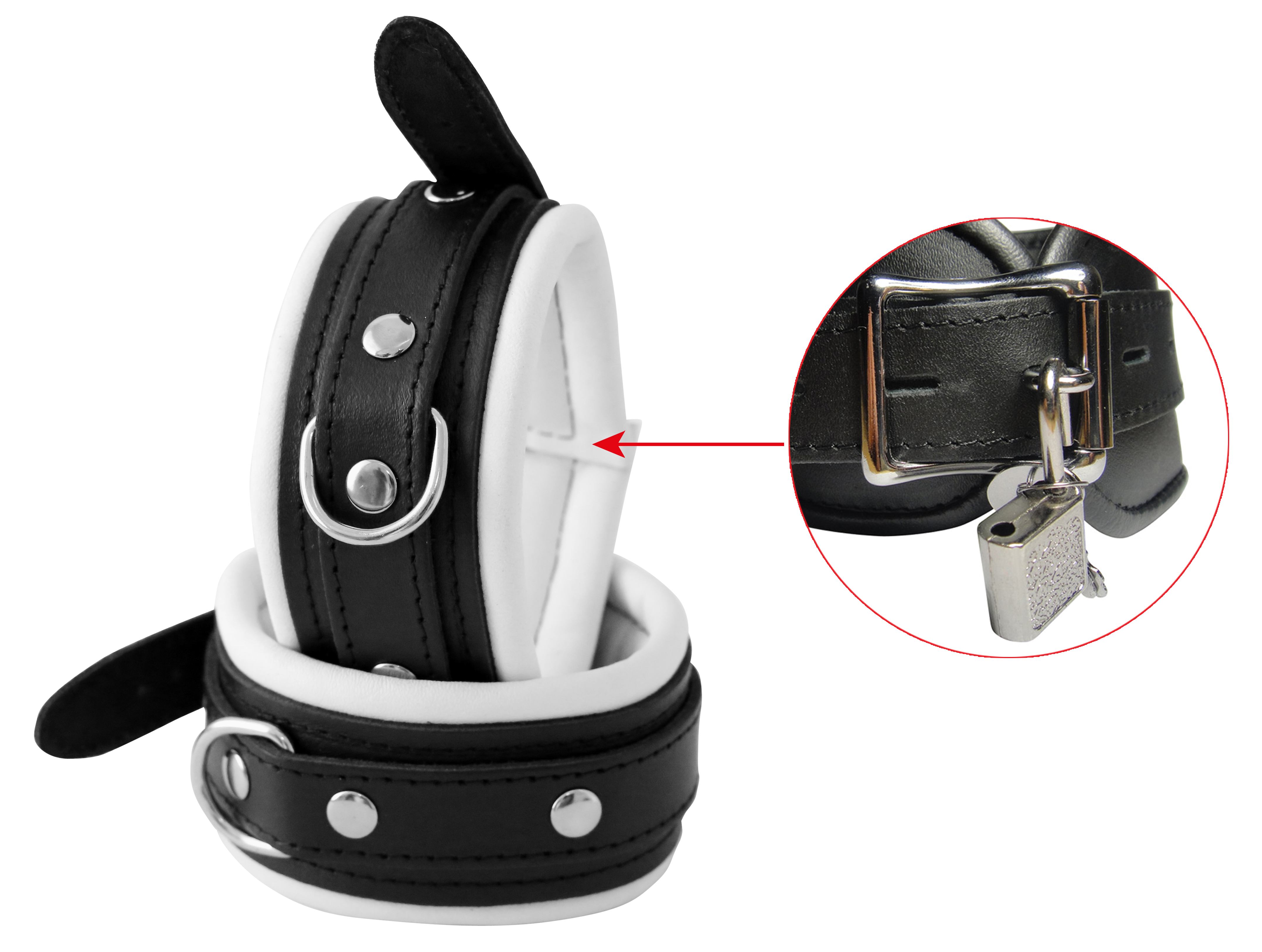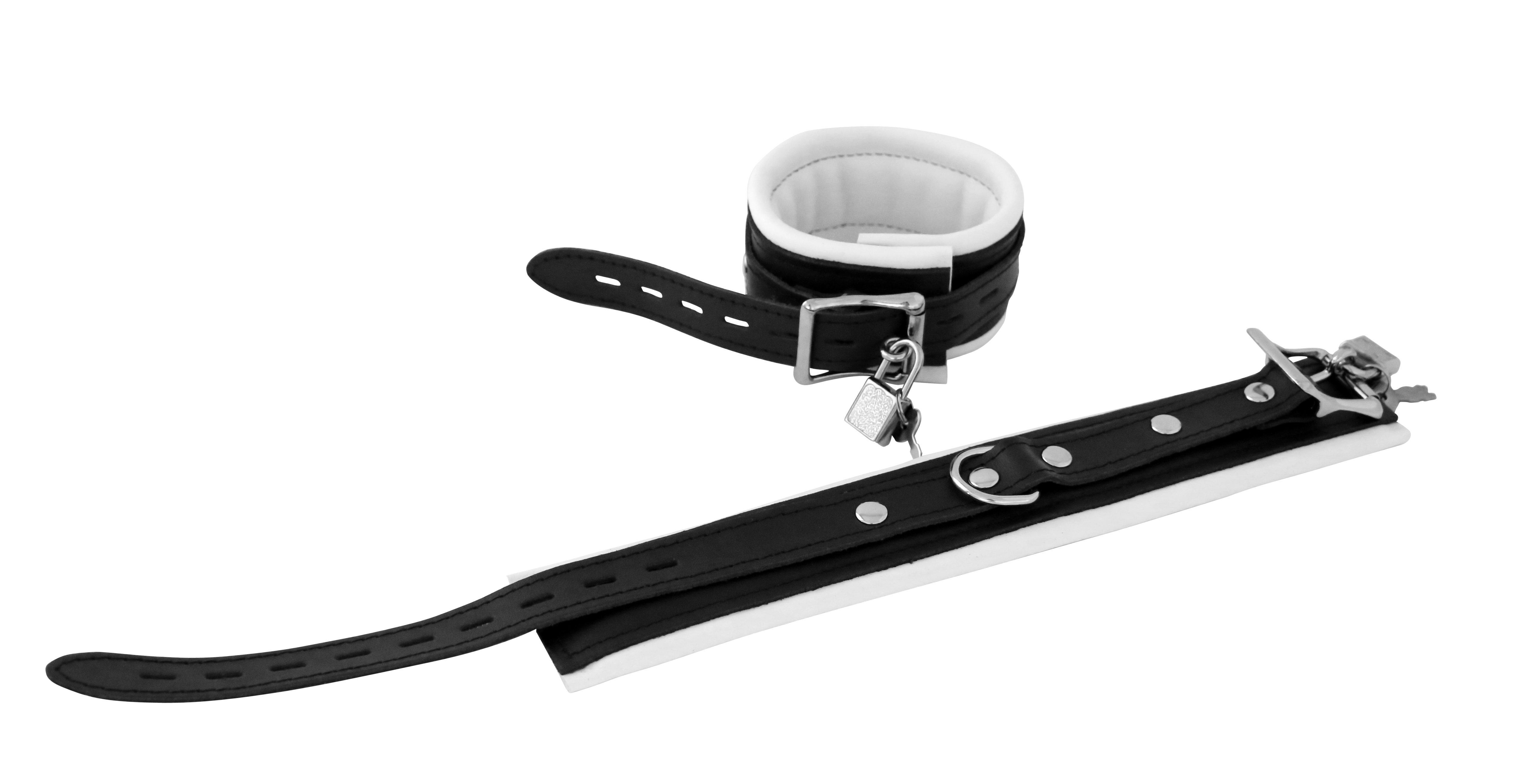 Leder Fußfessel weiß ca. 5 cm breit gepolstert abschließbar.