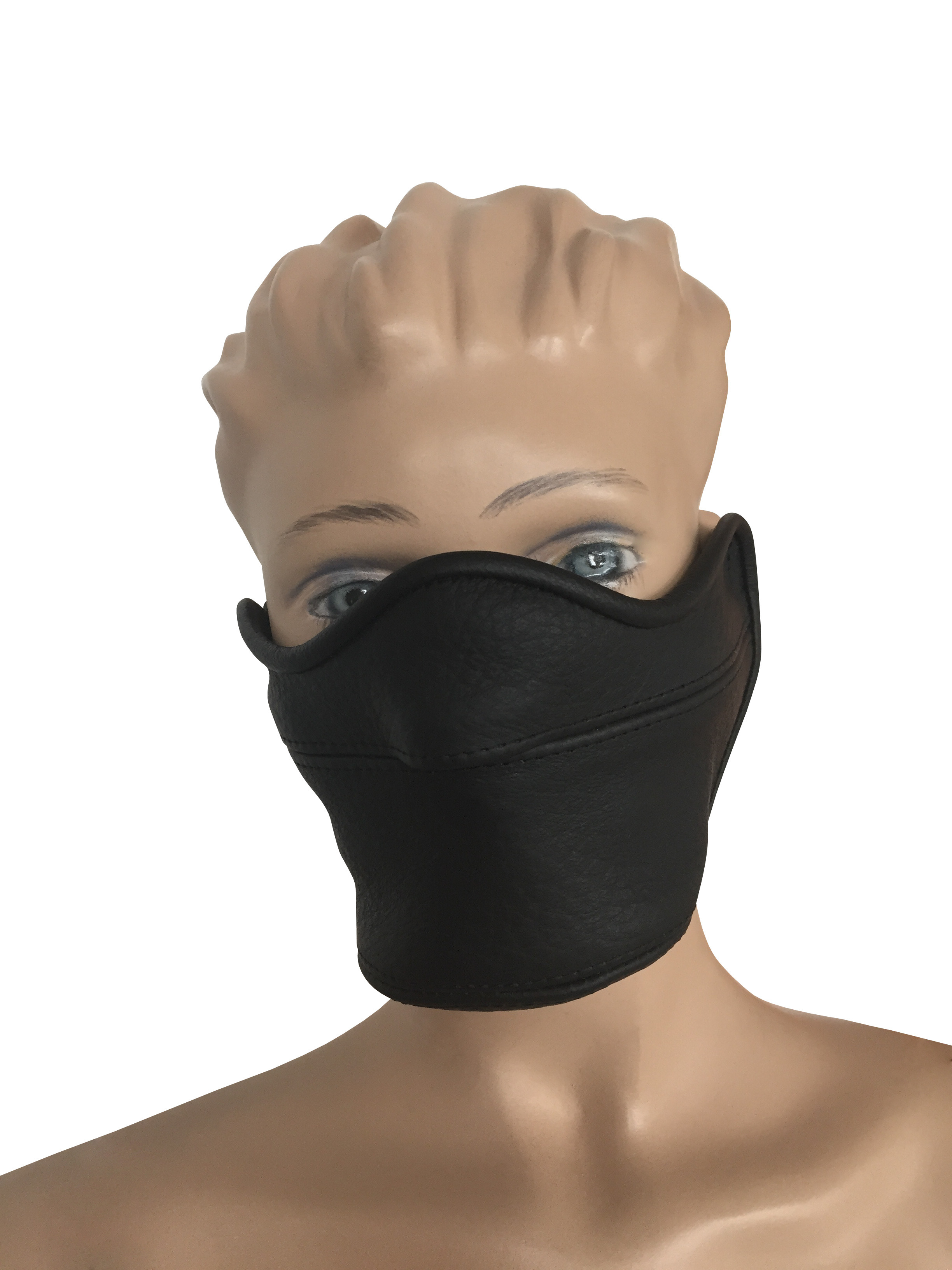 Maske aus weichem Leder mittels Riemen verstellbar.