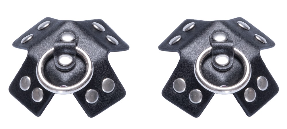 - Jeweils mit Ring und Nietenbesatz