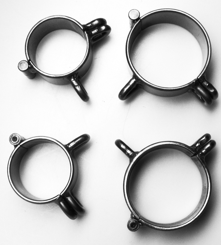 Lose, einzelne Fesseln ohne Verbindung. Mit Doppelöse für ein Schloss (nicht im Lieferumfang) und einer Fesselöse. Individuell und variabel einsetzbar...